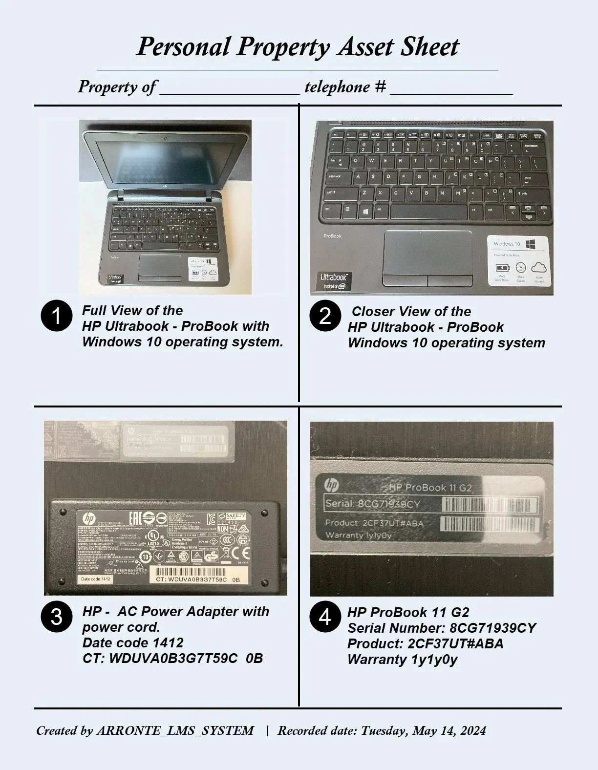 Personal Property Asset Sheet